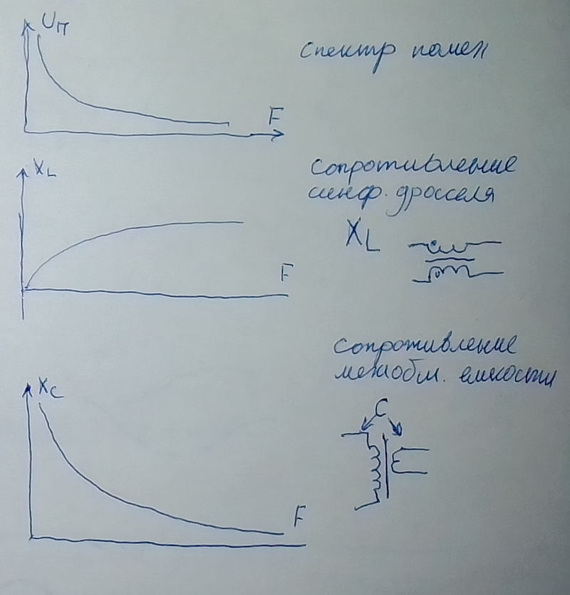 Он эффективно давит помехи потому что спектр помех из сети
