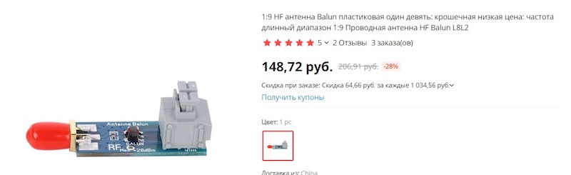 Для приема КВ я бы посоветовал этот балун на миниатюрном