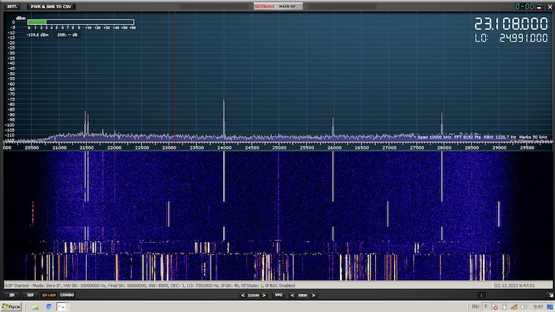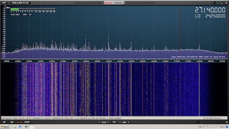 Спектр низа КВ на антенну длинный луч и балун когда в качестве
