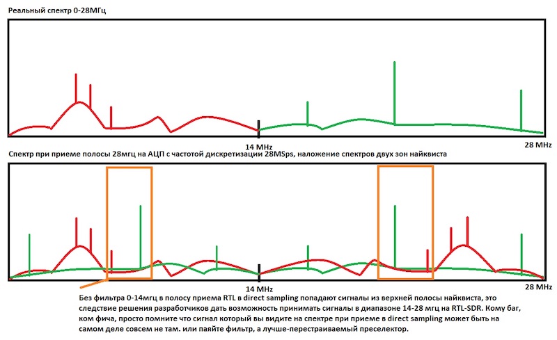При приеме в direct sampling вылезают сигналы из второй зоны