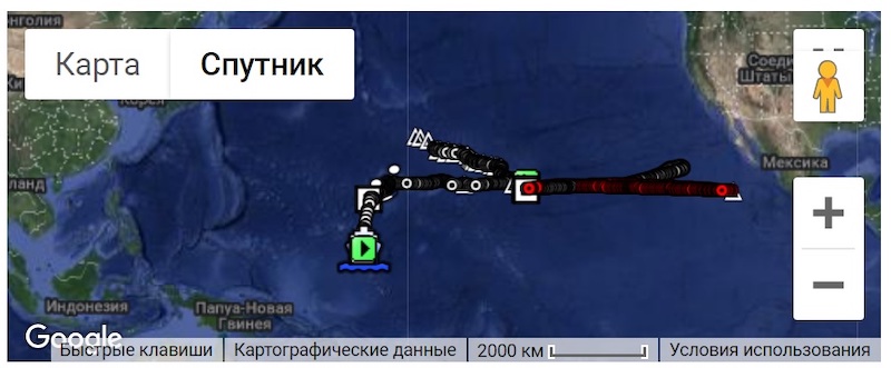 Внешний вид буйка и его трек в океане. На данном не использовались