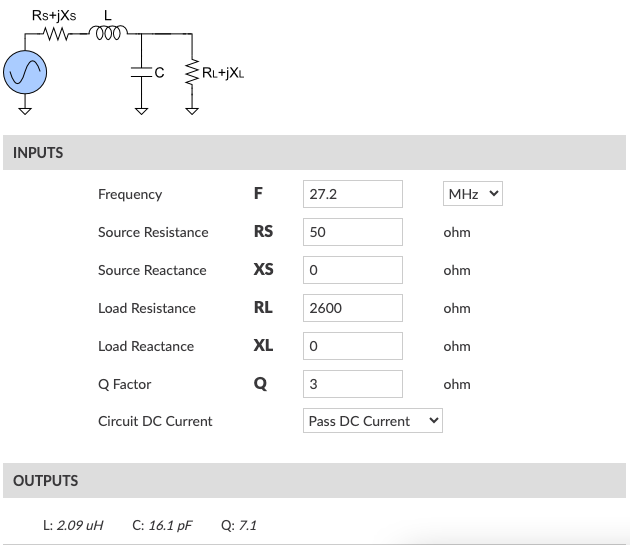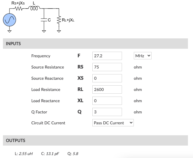 Излишнюю реактивность я убрал конденсатором переменной емкости