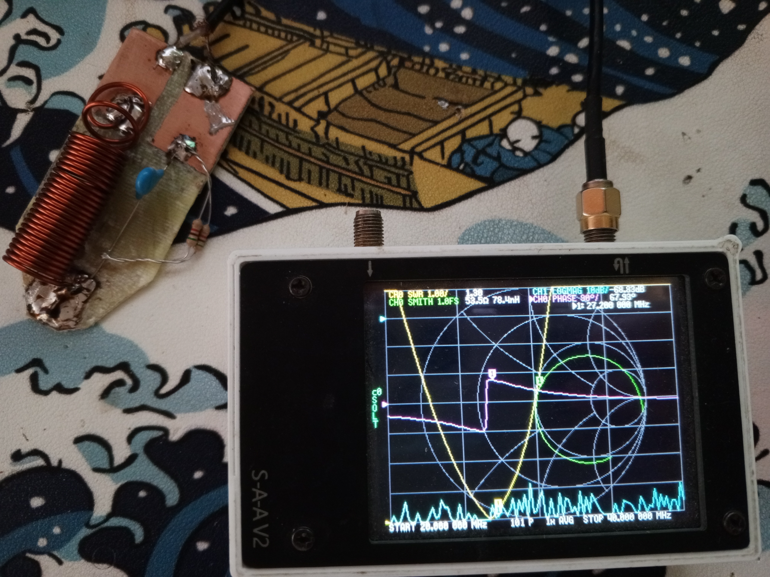 на 27 мгц очевидно плохо работает на 54 мгц (вторая гармоника),