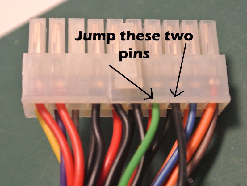 Чтобы запустить такой БП достаточно закоротить зеленый проводок