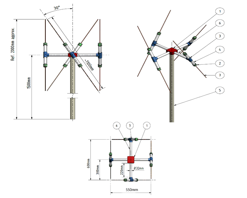 Parasitic lindenblad - один вертикальный диполь питаемый кабелем в