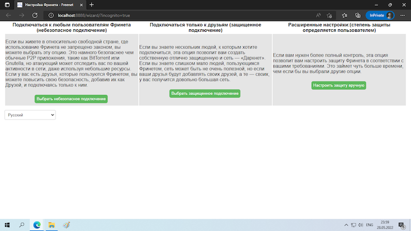Собственно после запуска нужно выбрать уровень безопасности (либо