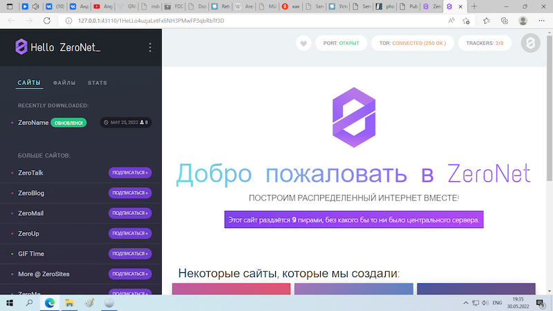 запустится браузер, подключится к пирам и откроет главную страницу