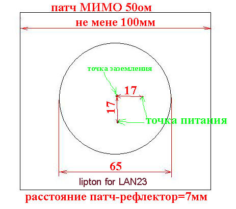 Патч круговой поляризации, требует подстройки емкости, фоток не