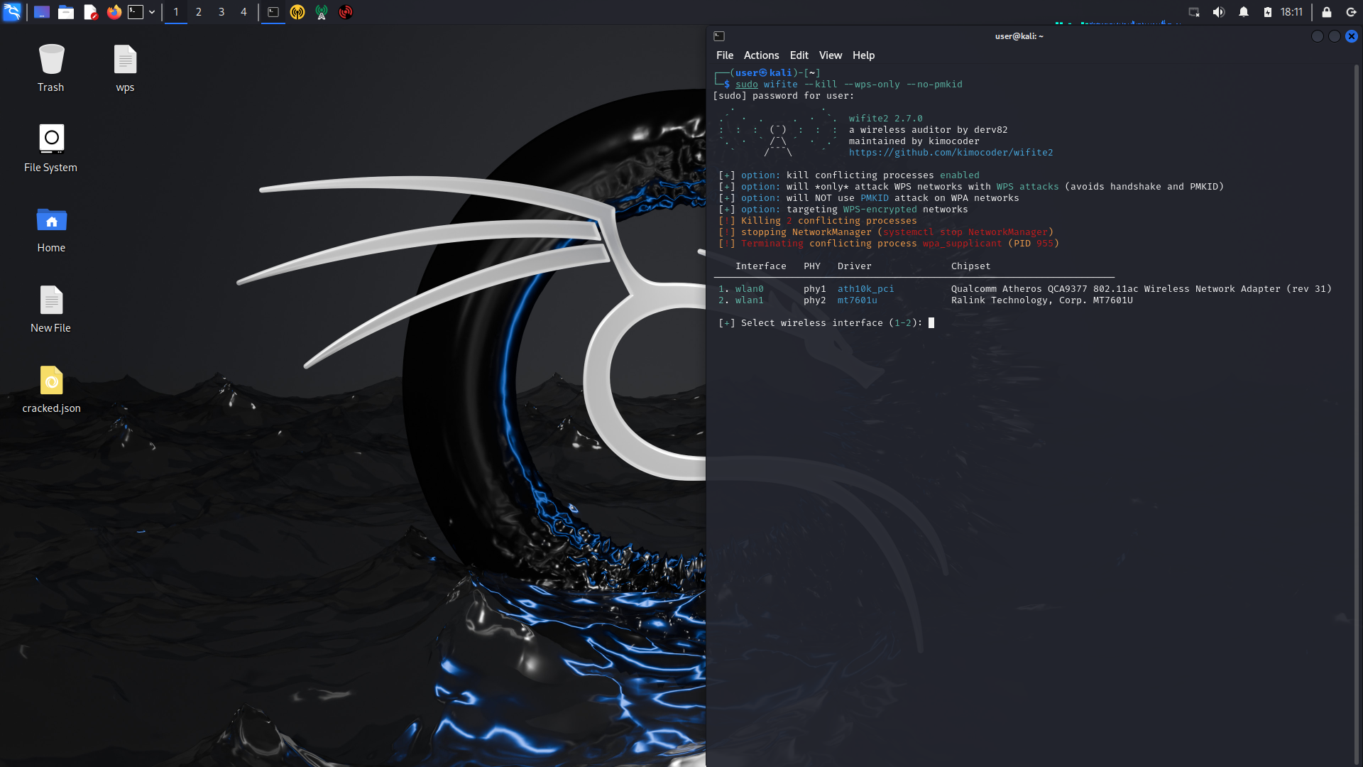 Запускаем wifite с опцией --kill чтобы она отрубила все мешающие