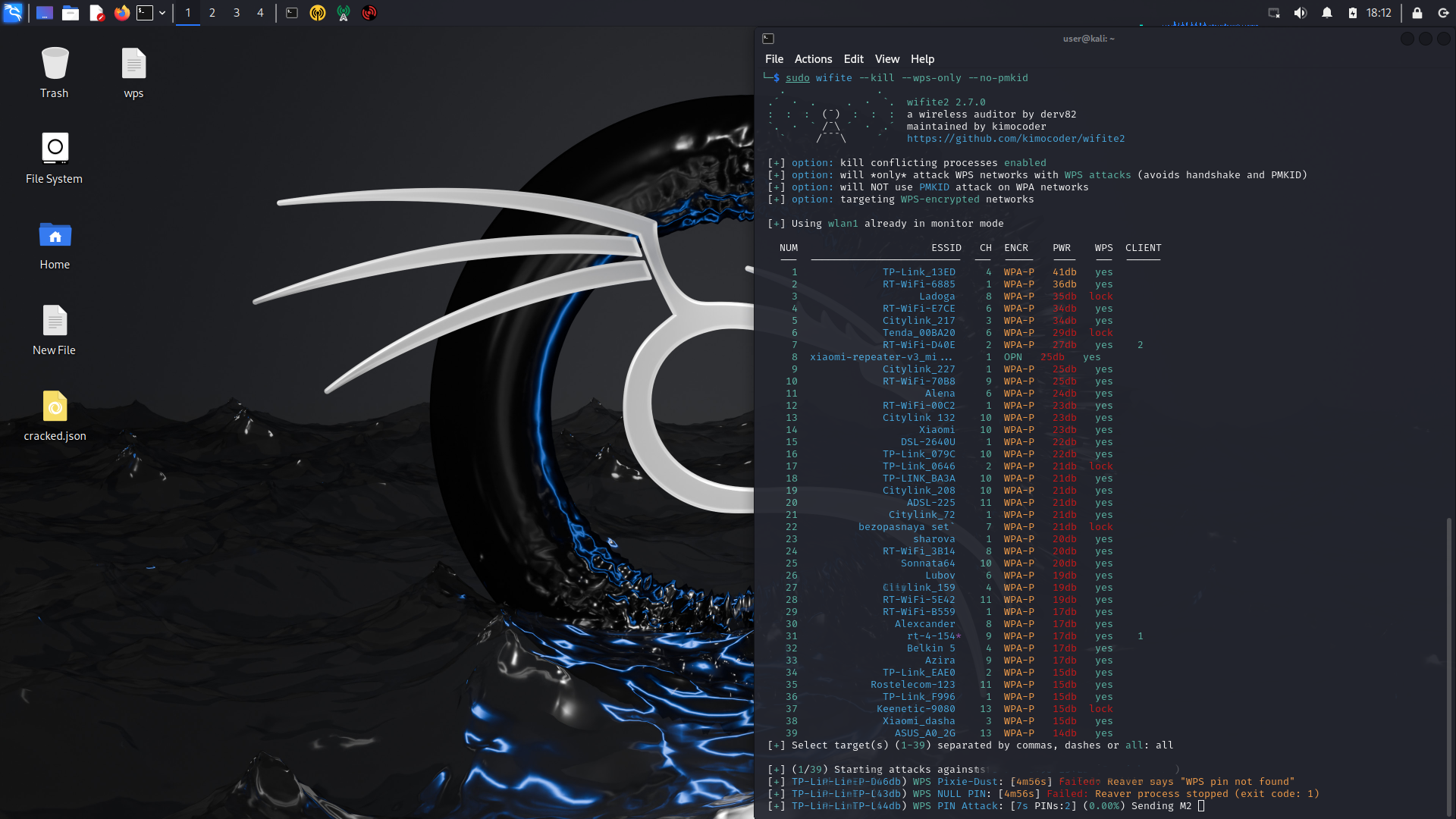 Kali и попробовал сначала reaver. на первой попавшейся сети с опцией