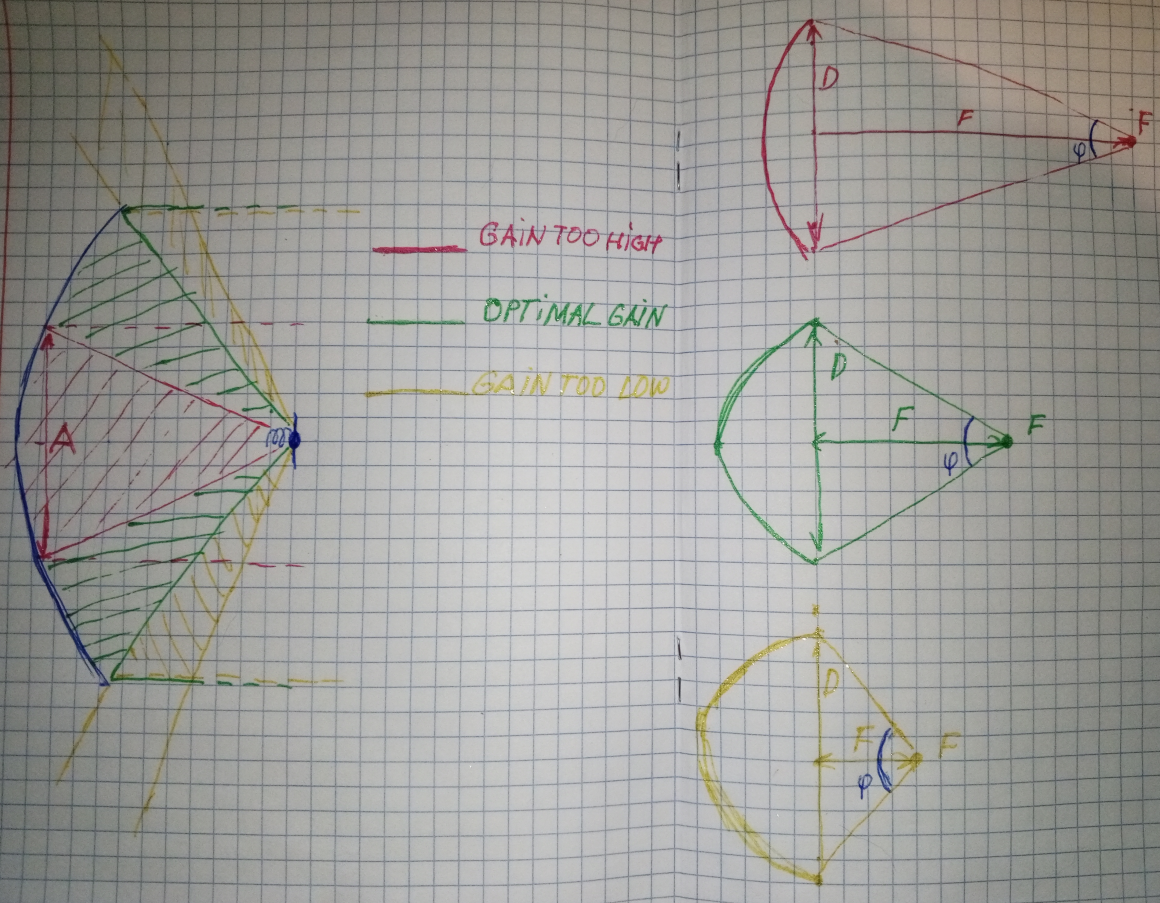 зависит оптимальное усиление облучателя для данного зеркала.