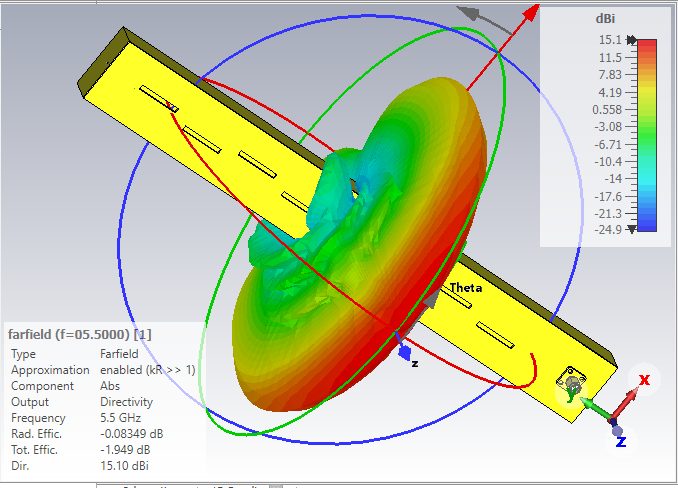 горизонтали и вертикали диаграмму направленности.